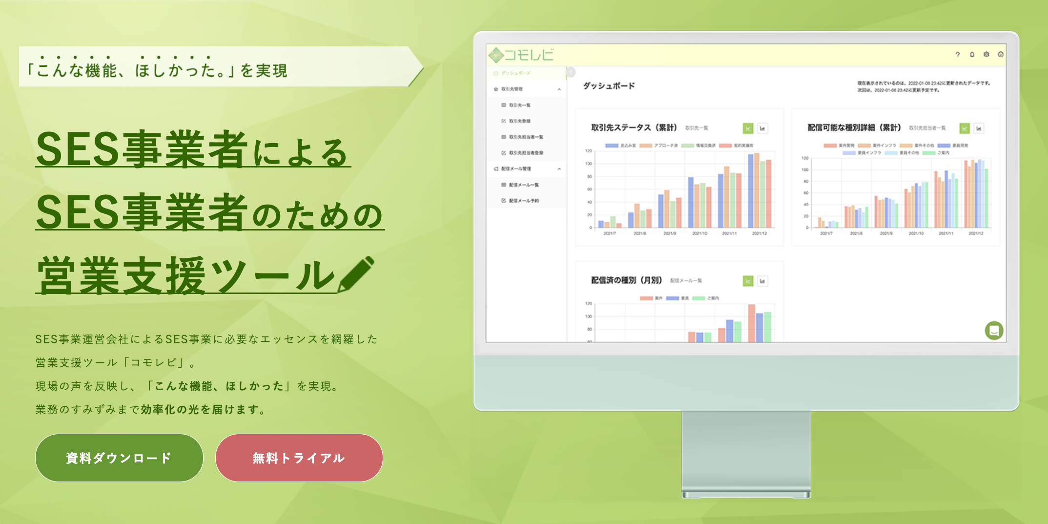 クラウド上で「取引先管理」「メール配信予約」「受信メール解析」などを一元化。情報の属人化やアナログ管理といったSES業界特有の課題を解消し、統計データに基づくKPI設計と効率的な営業活動を実現します。