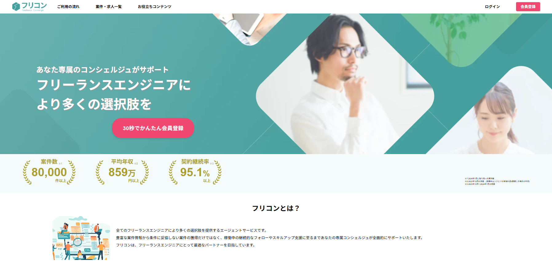 フリコンは、フリーランスエンジニアに特化したエージェントサービスです。